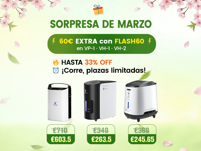 - 🌬️ Flujo continuo 1-7, concentración de O₂ hasta 93%