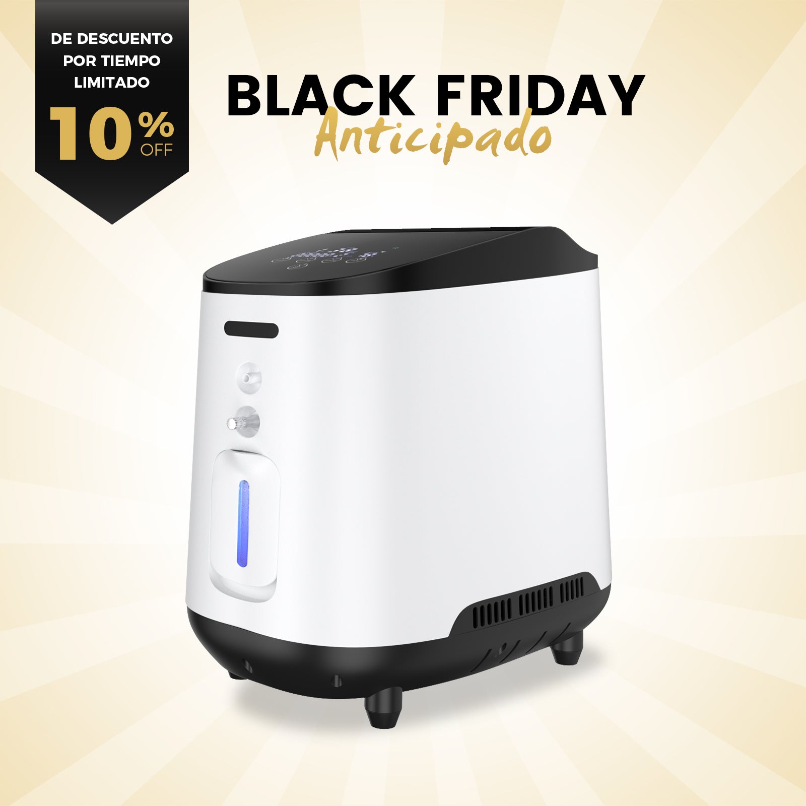 - Concentración de oxígeno: 35% - 90% (ajustable)