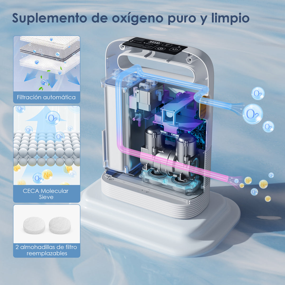 El VP-2 también incorpora un sistema de filtración confiable que elimina eficazmente impurezas, alérgenos y otros contaminantes del oxígeno, proporcionando oxígeno limpio y fresco.