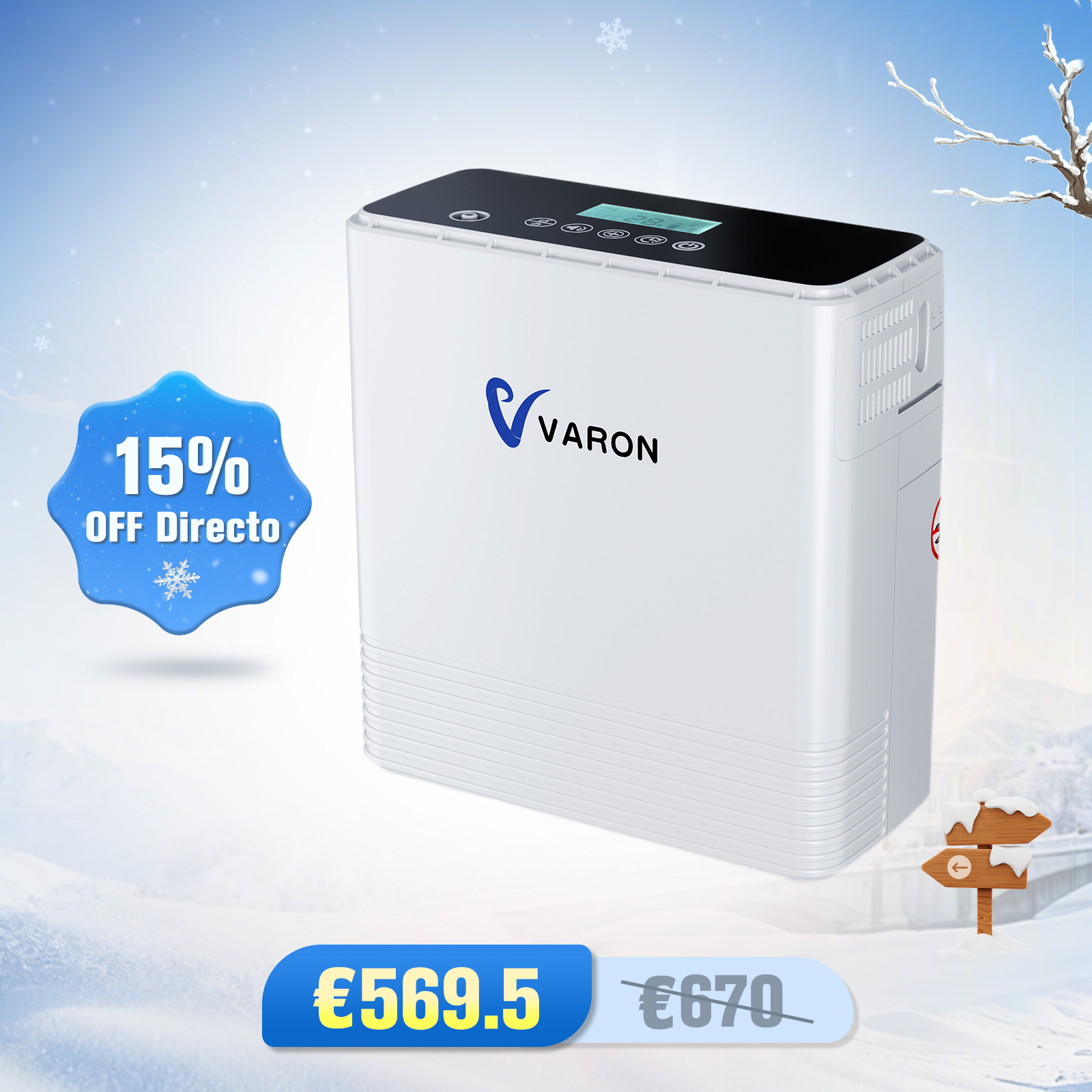 Concentrador de oxigeno portátil continuo VARON VP-6 | Caudal de 1-6 niveles (ajustable), homologado CE